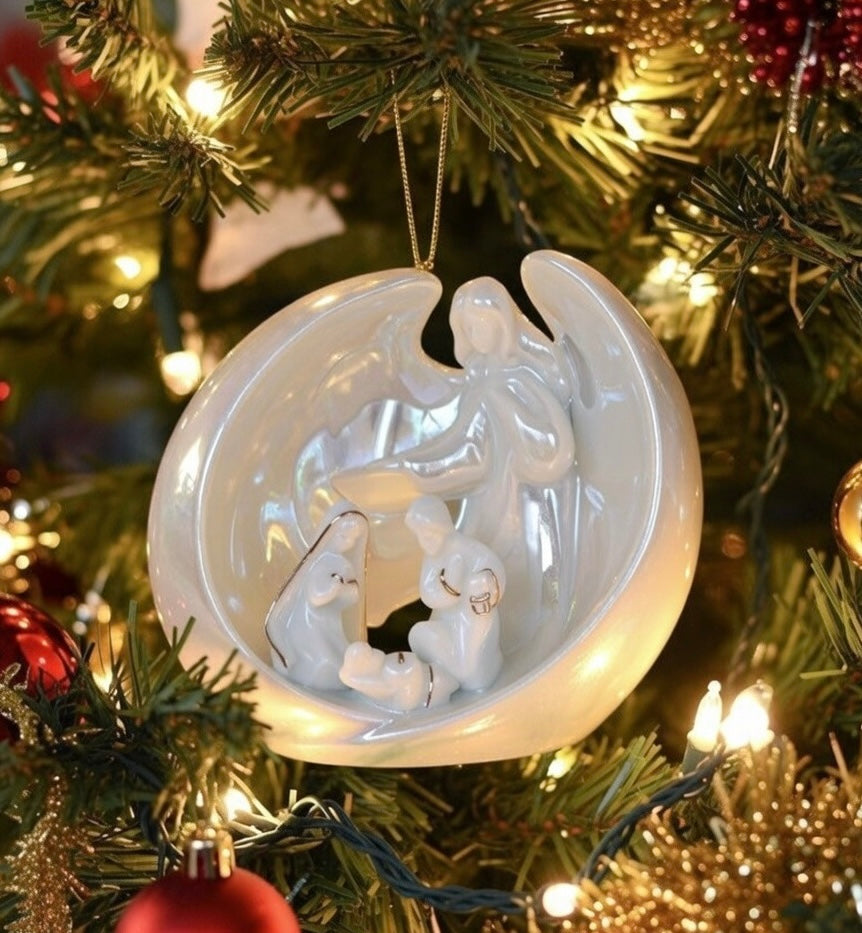 Ceramic Christmas Decor Guardian Angel With Holy Family Ornament, Home Décor, Religious Décor, Religious Gift, Church Décor, Baptism Gift